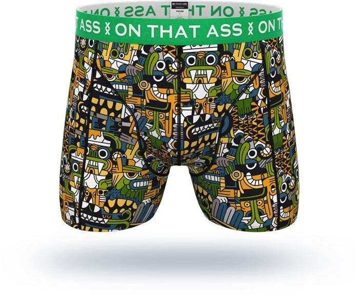 Ga voor een gedurfd design met de Maya Madness boxershort! Geïnspireerd door Azteekse en Maya-kunst, combineert dit patroon stijl met ultiem comfort.